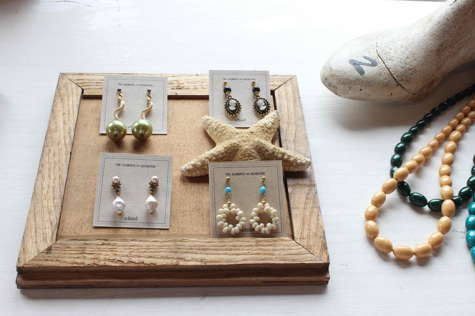 御礼 投稿日時: 2017年5月16日 投稿者: yukiyoshida946 Duplex by chiel ありがとうございました。 お越し下さったお客様が、じっくり見入りながら真剣にお好みのパーツやアクセサリーを選んでくださり、こちらとしても嬉しい時間でした。 お客様セレクトのパーツを組み合わせながら、「へぇ〜、こういう合わせ方、配色もあるんだな」と驚きと共に教わることも多いにありました。 展示期間中に来れなかった方、またリピートしたいという方、 chielのアクセサリー・パーツは余韻と共にまだ残してありますので、 ぜひ、お立ち寄りくださいませ。
