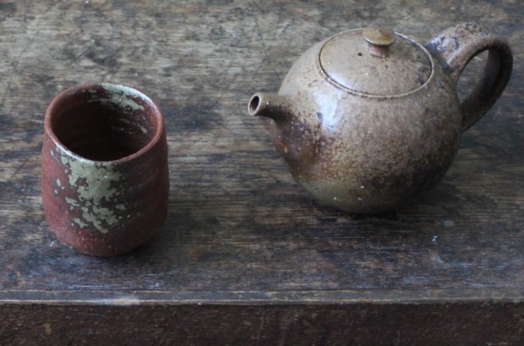 写真の2点は私物。急須は高島さんが独立して間無しの頃に入手、愛用し続け早や6年。高温で土を焼き締める備前焼の魅力が詰まっていて、使う毎に様々な表情を見せてくれます。