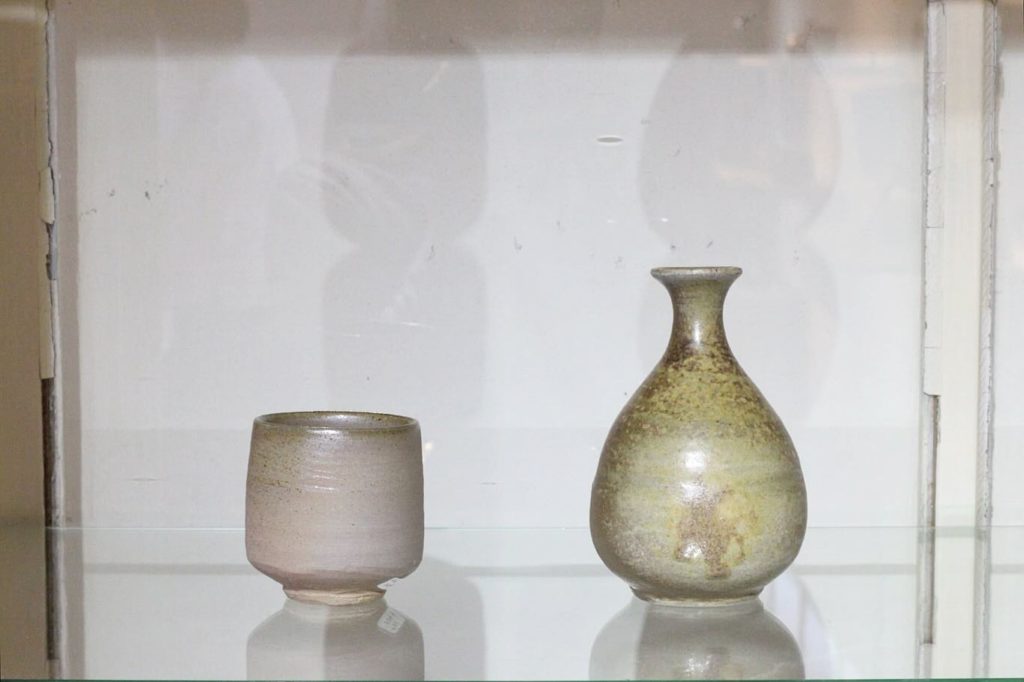 写真2の徳利と湯呑は白備前。初めて見る品です。不思議な色味と質感。